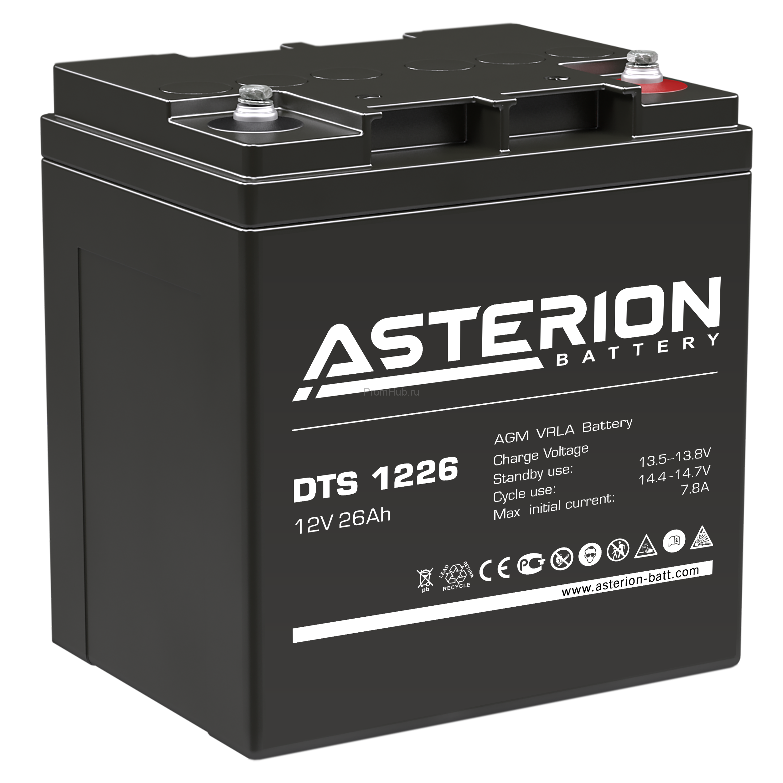 Свинцово-кислотные аккумуляторы ASTERION серии DTS предназначены для использования в системах бесперебойного питания, резервного энергоснабжения, автономных энергосистемах. Изготовлены по AGM технологии (электролит, абсорбированный в стекловолоконном сепараторе), являются герметизированными и необслуживаемыми, со сроком службы в буферном режиме 10 лет (от 5 до 26 Ач – 5 лет).