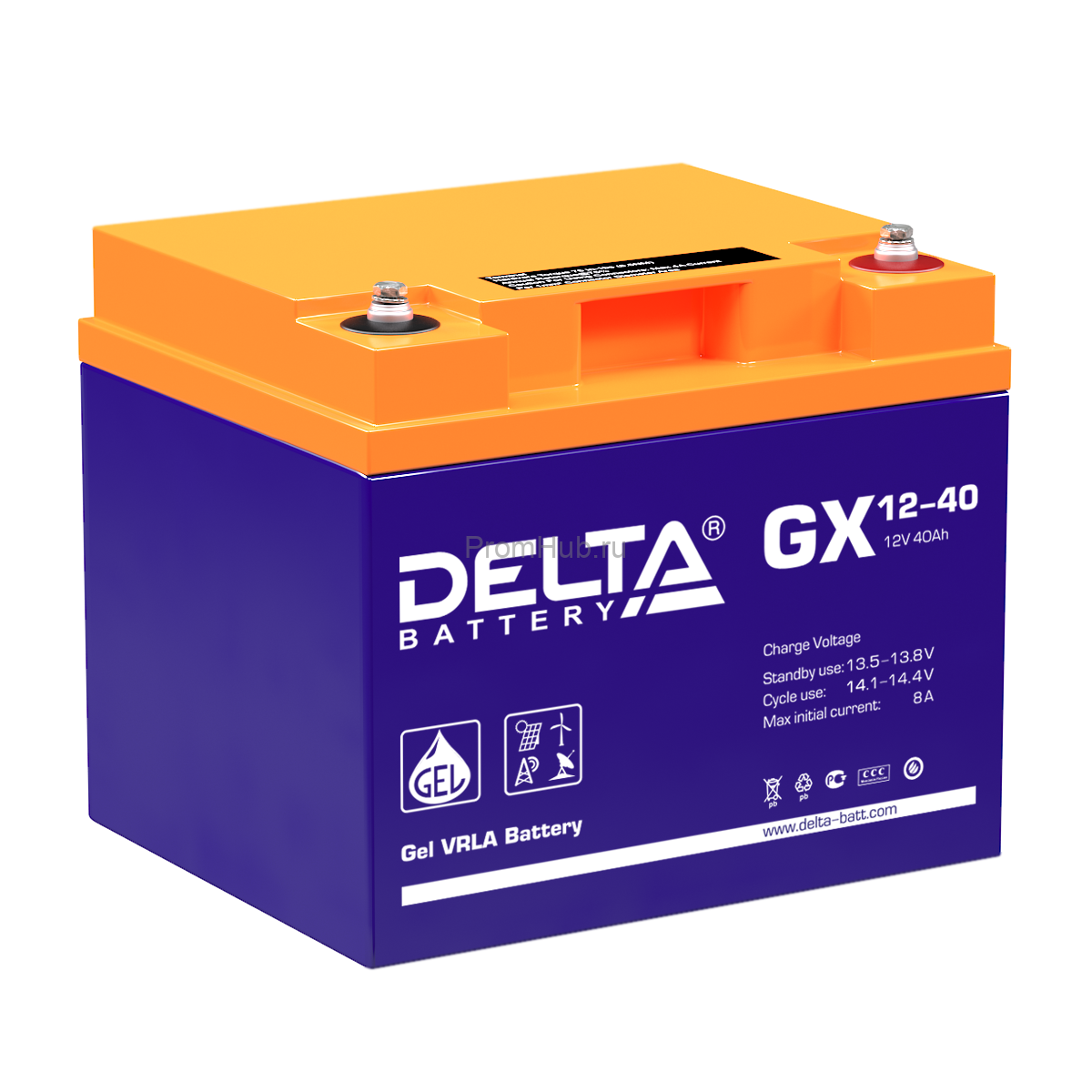 Герметизированные, необслуживаемые свинцово-кислотные аккумуляторы DELTA серии GX изготовлены по технологии GEL. В качестве электролита используется композитный гель - загущенный раствор серной кислоты, что обеспечивает устойчивость аккумуляторов Delta GX к глубоким разрядам и высокую температурную стабильность, а также увеличивает число циклов заряда/разряда, и продолжительность работы в тяжелых режимах.