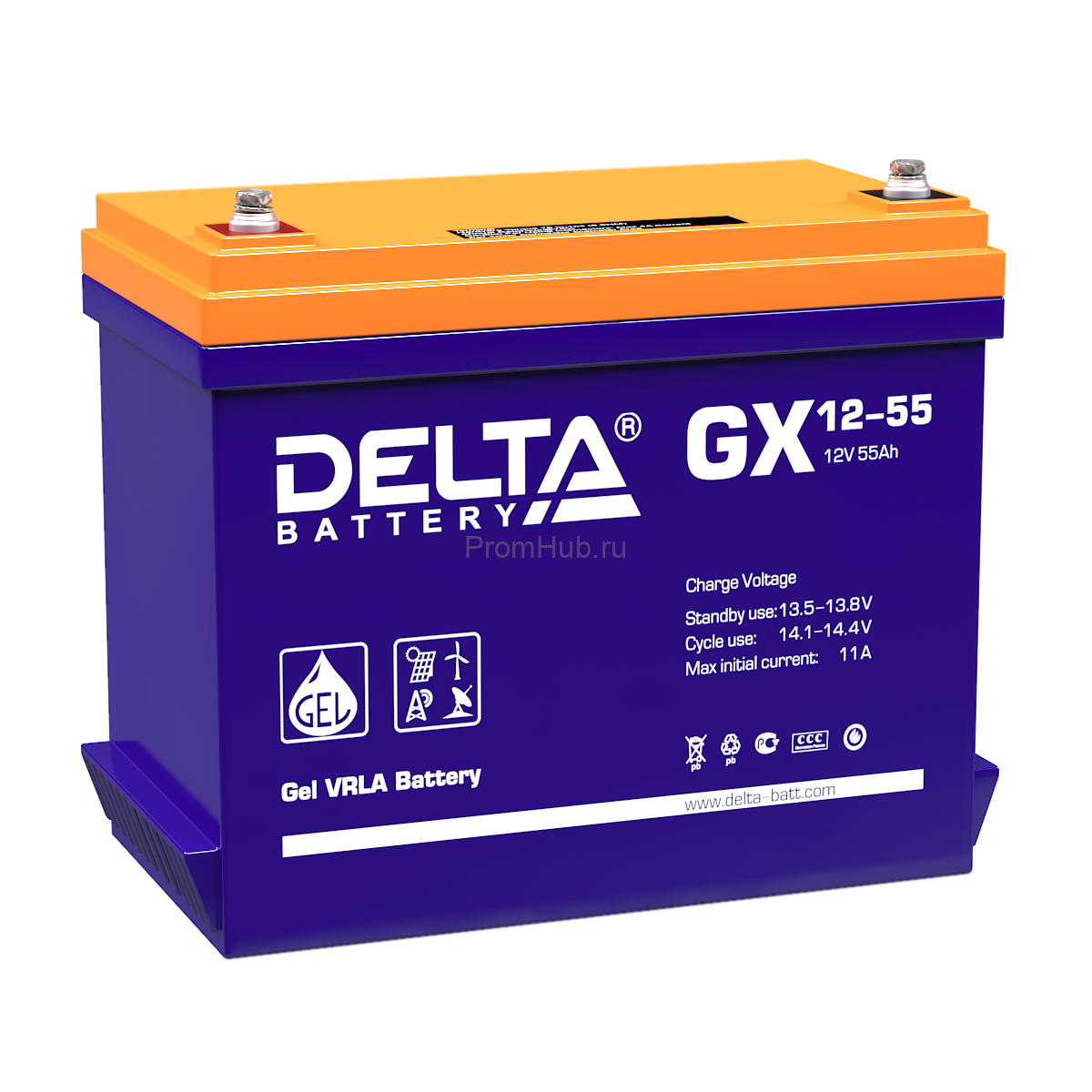 Герметизированные, необслуживаемые свинцово-кислотные аккумуляторы DELTA серии GX изготовлены по технологии GEL. В качестве электролита используется композитный гель - загущенный раствор серной кислоты, что обеспечивает устойчивость аккумуляторов Delta GX к глубоким разрядам и высокую температурную стабильность, а также увеличивает число циклов заряда/разряда, и продолжительность работы в тяжелых режимах.